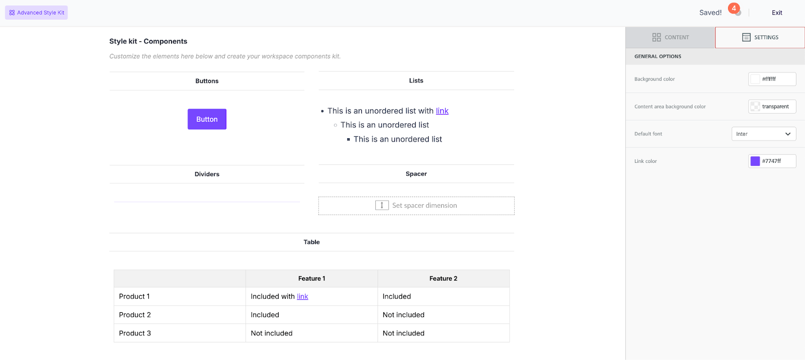 With our Advanced Style Kit, you can even set predefined background colors, set the appearance of lists, and tables.