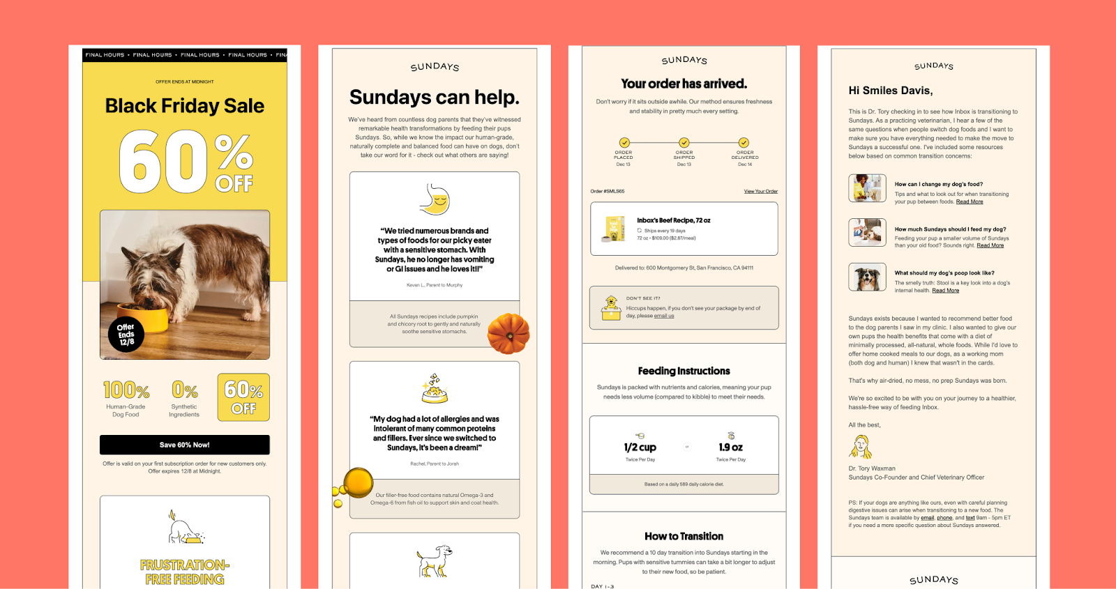 While each email was different in its own unique way, we noticed a consistent pattern in them all: On-brand, but never boring. Let’s take the emails by Sundays as a really good example of staying on brand. Everything from their Black Friday emails to their order confirmation emails follows the same brand guidelines, ensuring a cohesive experience at every touchpoint.