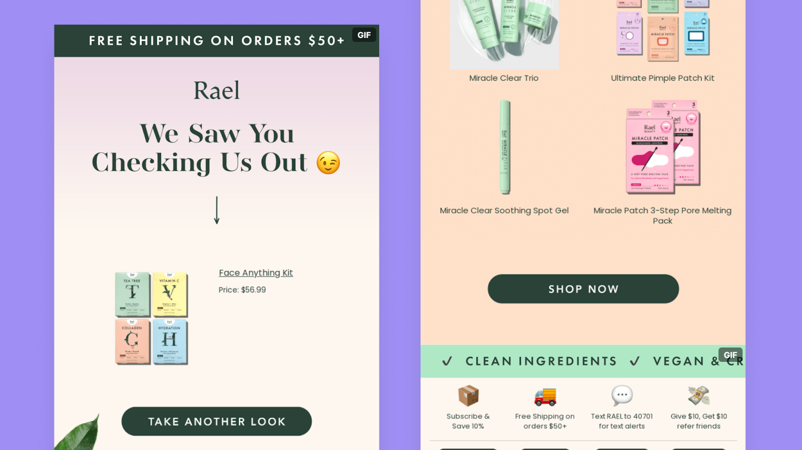 The “Hook, Line, and Sinker” Awards goes to Rael for its charming abandoned cart email that feels like a warm reminder rather than a hard sell. Instead of just pushing one product, the thoughtfully curated product suggestions make it easy to explore complementary items.