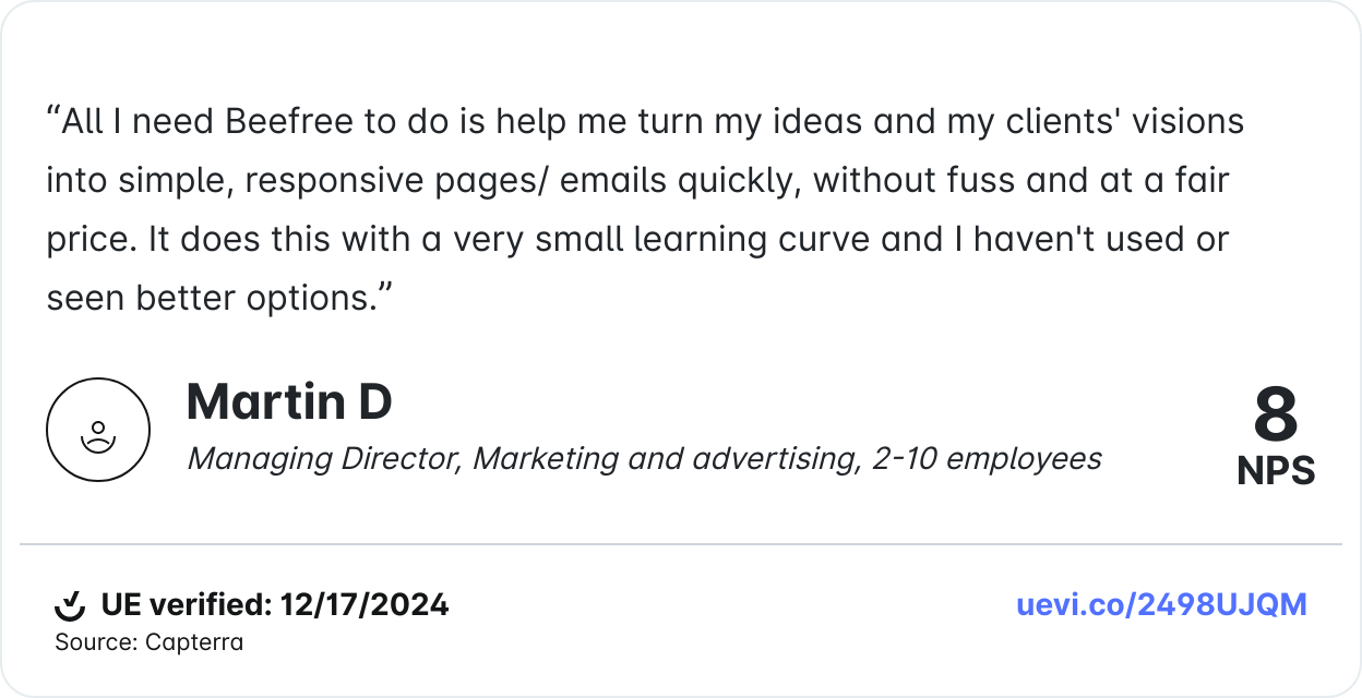 A really good email involves a balance of best practices and bold moves. The winning emails didn’t just make an impact; they set the standard for what’s possible in email marketing. Now, it’s your turn to take the lessons, insights, and inspiration from these campaigns and channel them into your next great idea. Start designing with Beefree for free!
