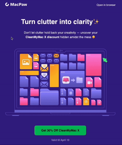 We are seeing brands do some really cool, fun hover effects in email. It's a good way to tell people that something's clickable.