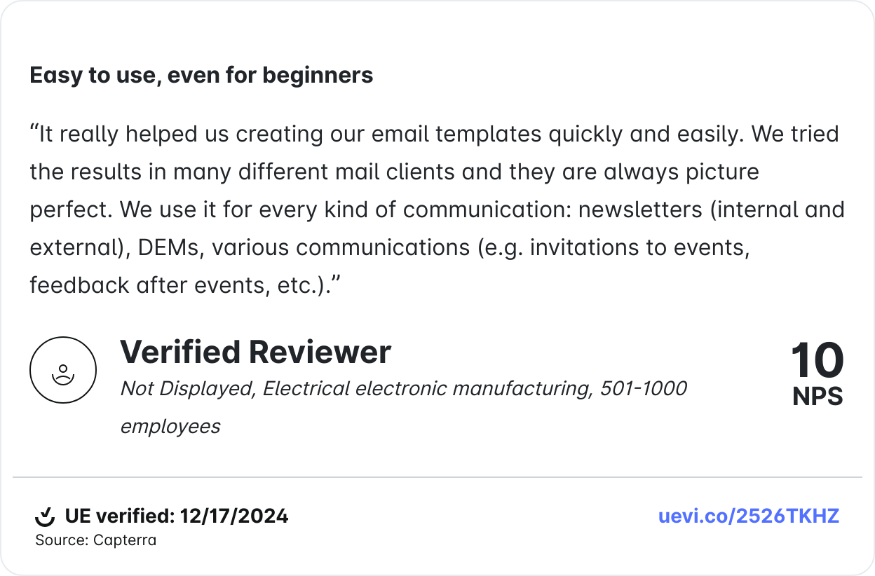 With Beefree’s intuitive design tools and a library of over 1,700 templates tailored for various industries and purposes, you can achieve professional results without the guesswork. The wide variety of pre-designed options ensures that you can find a solution that aligns perfectly consistent with your brand.