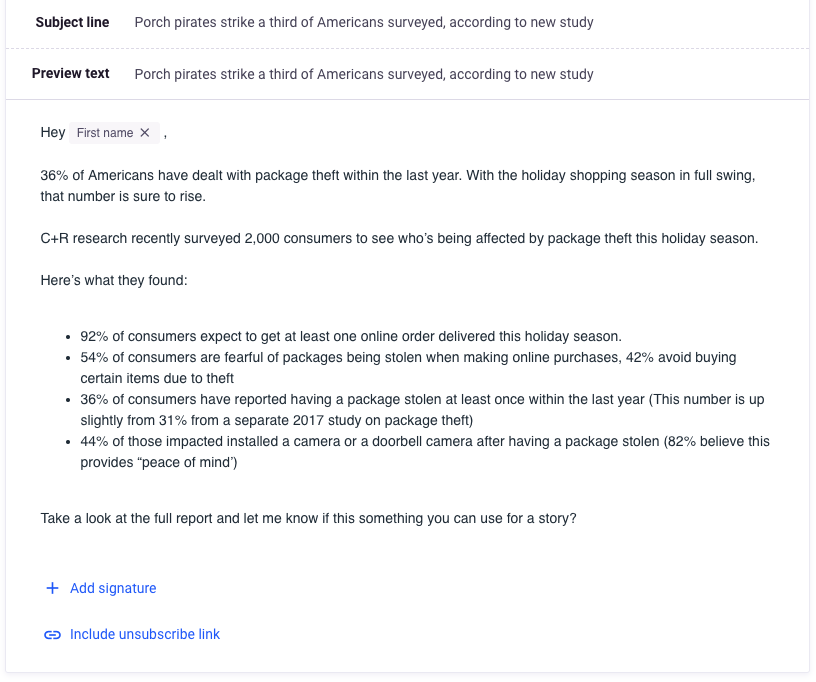 Notice that touch of personalization? The writer used the journalist’s first name to make it appear the email was written especially for them.