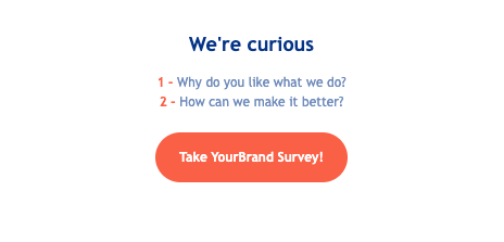 This template offers two different ways to collect feedback, making it versatile for a brand’s needs. Below, you’ll see the survey embedded in the template and a CTA linking readers to the brand survey.Â