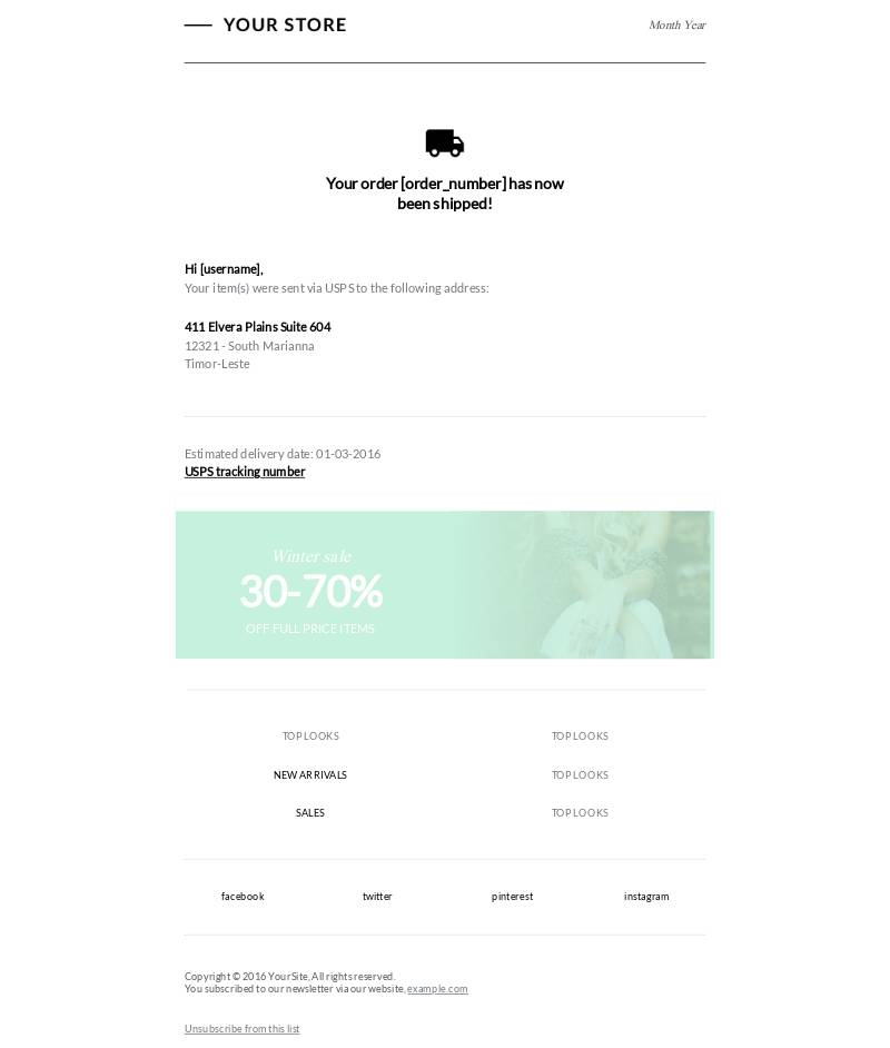 - Subject line: Your subject line should clearly state what the notification is about - it can be as simple as “Your order has shipped!” or “Welcome to the club!” This tells customers that the email relates to them directly and encourages them to open it for further details.