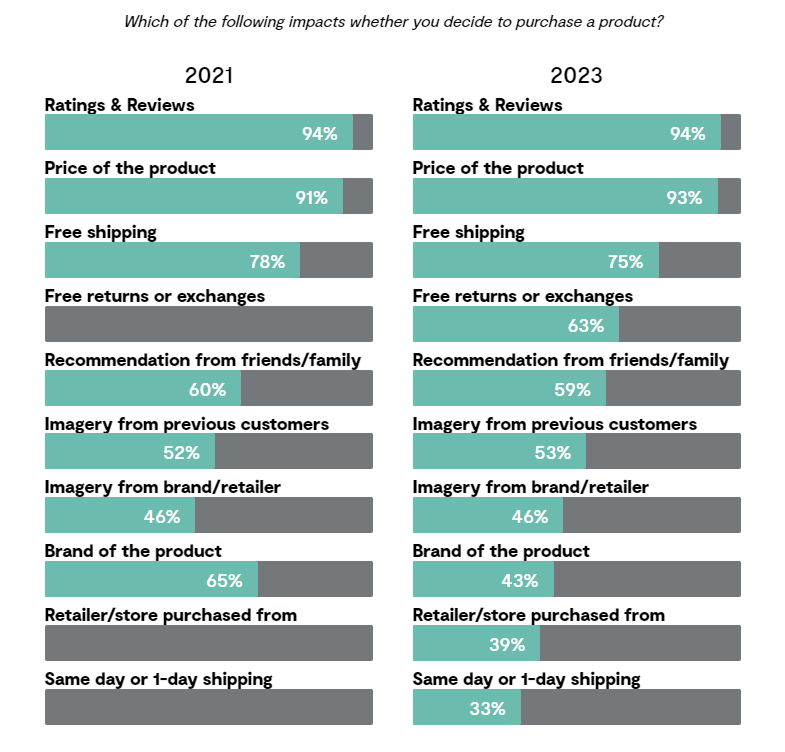 - Increases sales: Social proof drives sales. According to a recent survey by Power Reviews, 90% of potential customers use online reviews to make purchasing decisions. In fact, reviews have more influence over purchasing decisions than product prices. Turning product reviews into customer testimonials and encouraging reviews on third-party sites can significantly boost sales.