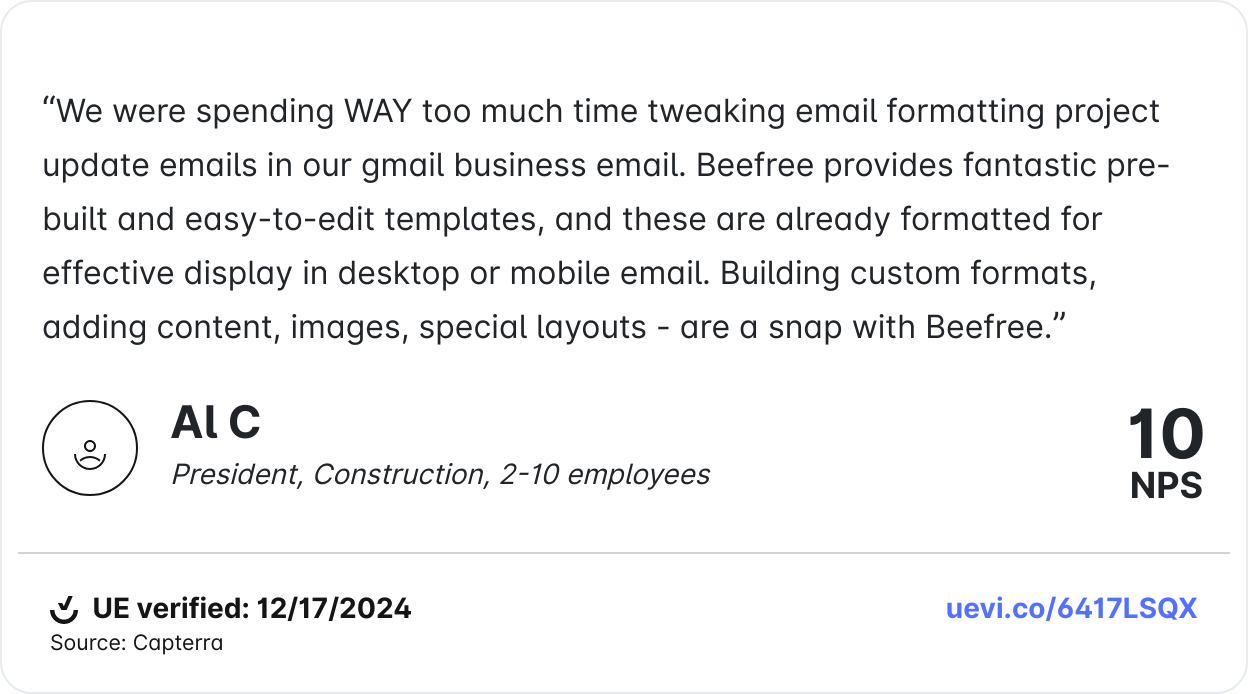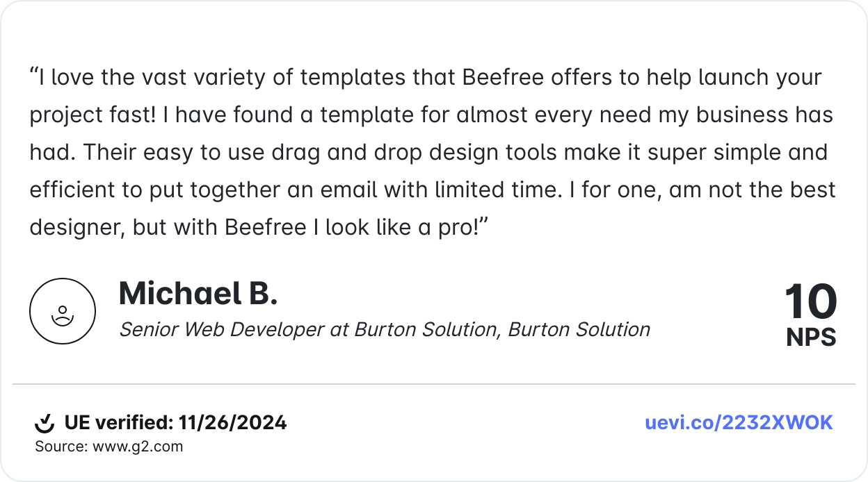 An impressive 81% of users reported being able to design emails at least 3x faster since implementing Beefree. What used to take hours now takes mere minutes with pre-designed templates and built-in collaboration tools.